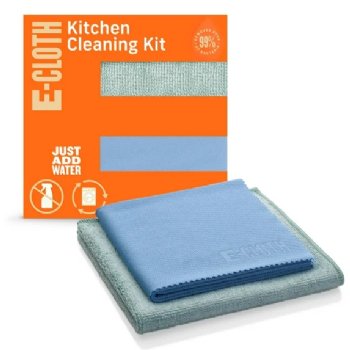 The two-piece E-Cloth Kitchen Cleaning Kit effortlessly keeps your kitchen looking like new from sink to stove, with premium microfiber that's appropriate for all surfaces. Use the Cleaning Cloth to wipe away greasy splatters, crumbs, and over 99% bacteria from countertops, appliances, stainless, and more. Stubborn splatters don't require extra tools, thanks to the handy sewn-in scrubbing pocket. Follow with the Glass & Polishing Cloth for gleaming, fingerprint-free surfaces. Because water alone activates our cloths, you can focus on cleaning — not spraying — and get through chores faster. Speed aside, you may not want additional cleaners in your food — or anywhere near it. This set helps you keep a squeaky-clean prep space with masses of precision-engineered microfibers, activated by water's cleaning might. No need to add additional cleaners. And because these cloths are guaranteed to last for 1 year or 100 washes, you may never put paper towels or spray bottles in your shopping cart again. Just toss them in the laundry to refresh. We think you’ll like our recipe for a clean kitchen: Dampen. Wipe. Repeat. So easy!
