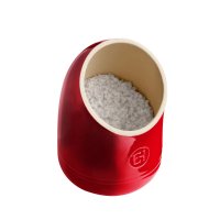 The new Salt Pig has a non-glazed interior to prevent all salt types (fine sea salt, corse salt, or fleur de sel) from sticking together or forming a crusty top. It's wide opening makes it easier, even for large hands, to grab pinches easily. The well thought out curves help protect the salt from dust & damp.